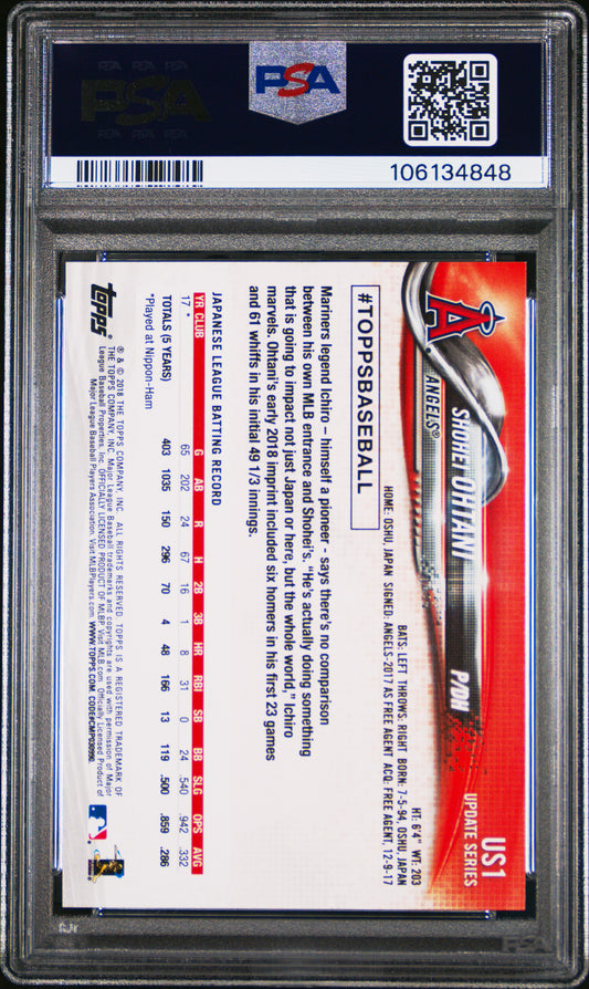 2018 Topps Update Shohei Ohtani Pitching Rookie PSA 9